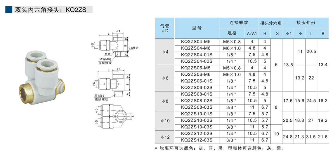 快速接頭KQ2系列 雙頭內(nèi)六角接頭:KQ2ZS