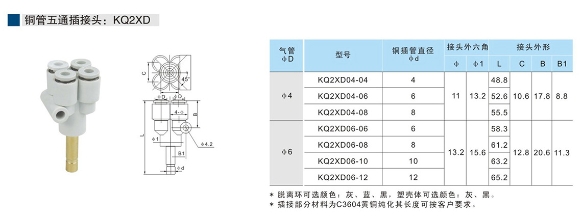 快速接頭KQ2系列 銅管五通插接頭:KQ2XD