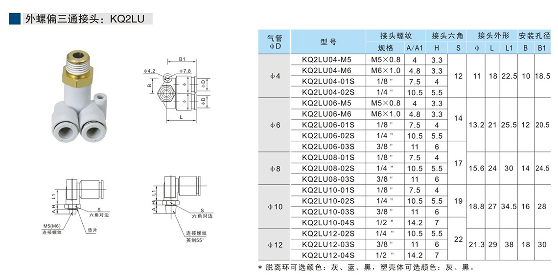 快速接頭KQ2系列 外螺偏三通接頭:KQ2LU