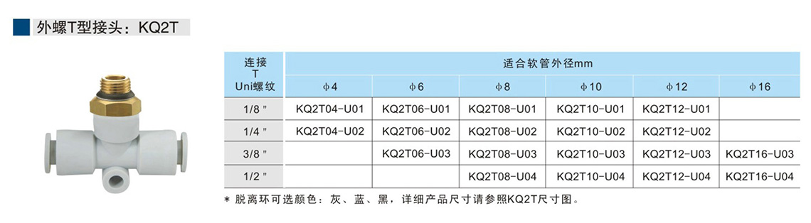 萬用螺紋接頭KQ-U系列 外螺T型接頭:KQ2T