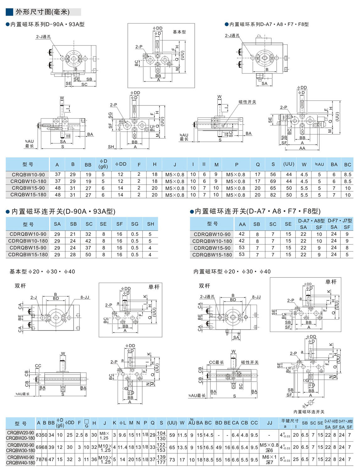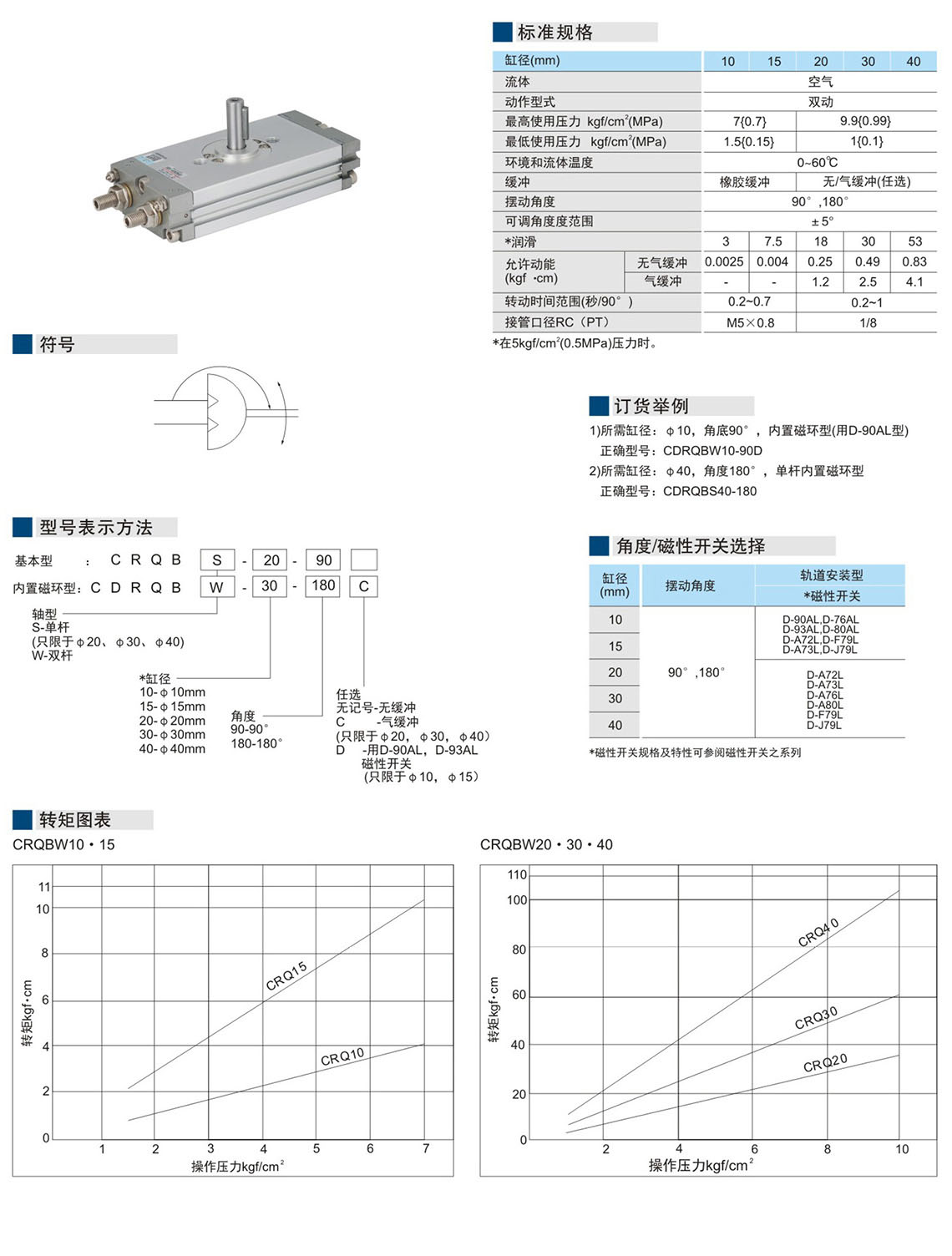 薄型回轉(zhuǎn)擺動(dòng)氣缸(齒桿型)CRQB系列(Φ10-Φ40)