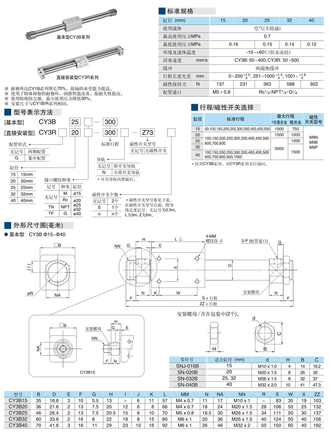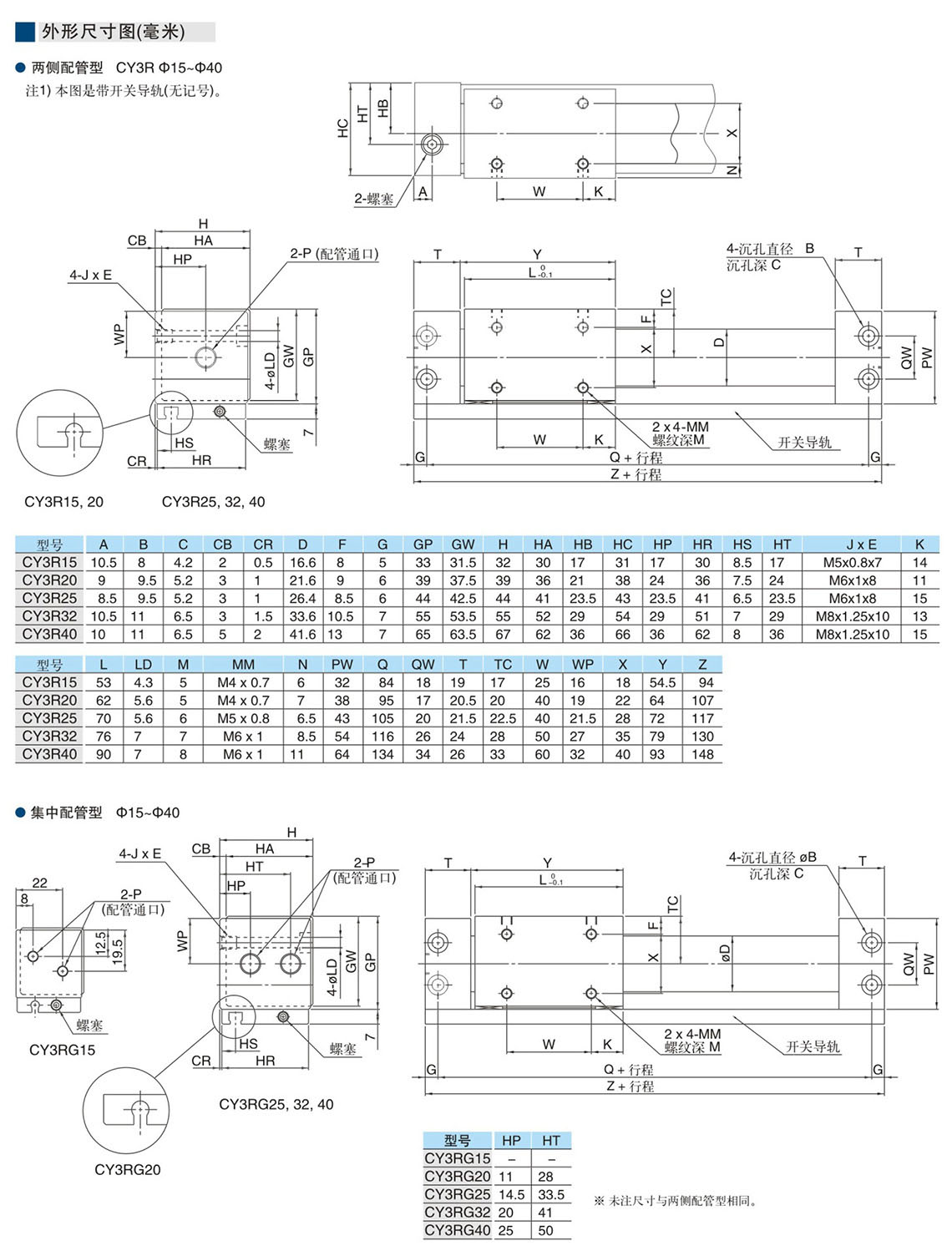 磁偶式無桿氣缸CY3B/CY3R系列(Φ15-Φ40)