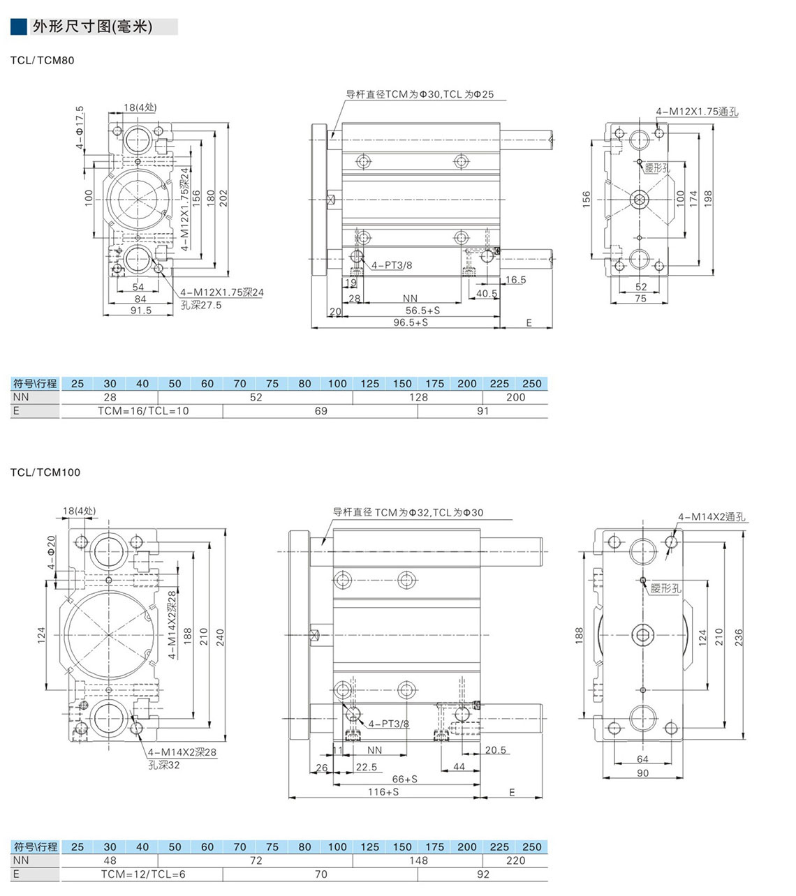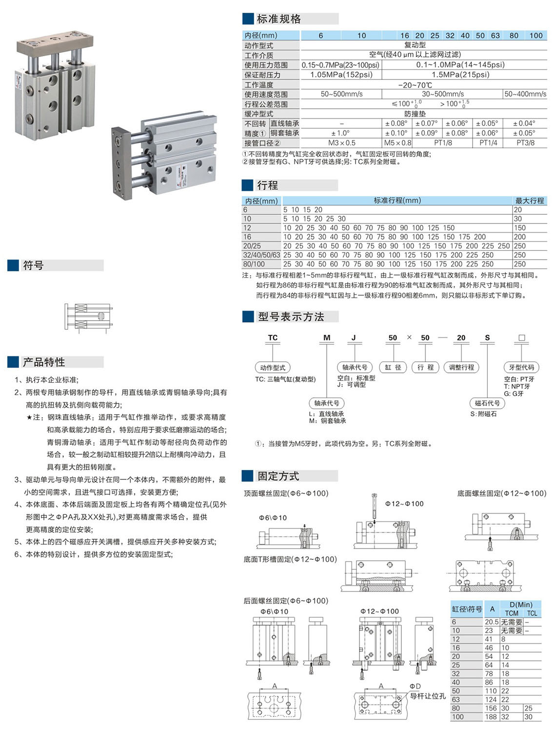三軸氣缸TCL、TCM系列(Φ6-Φ100)